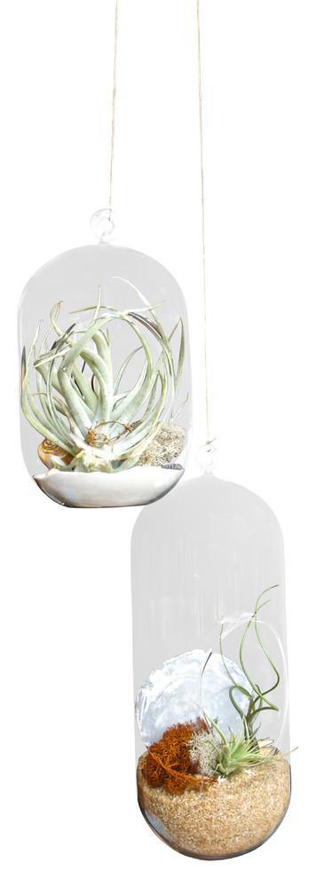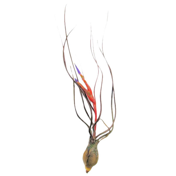 Tillandsia species (also called saprophytes or air plants) – i.e. they normally grow without soil can be attached to other plants, wood, ornaments, etc.