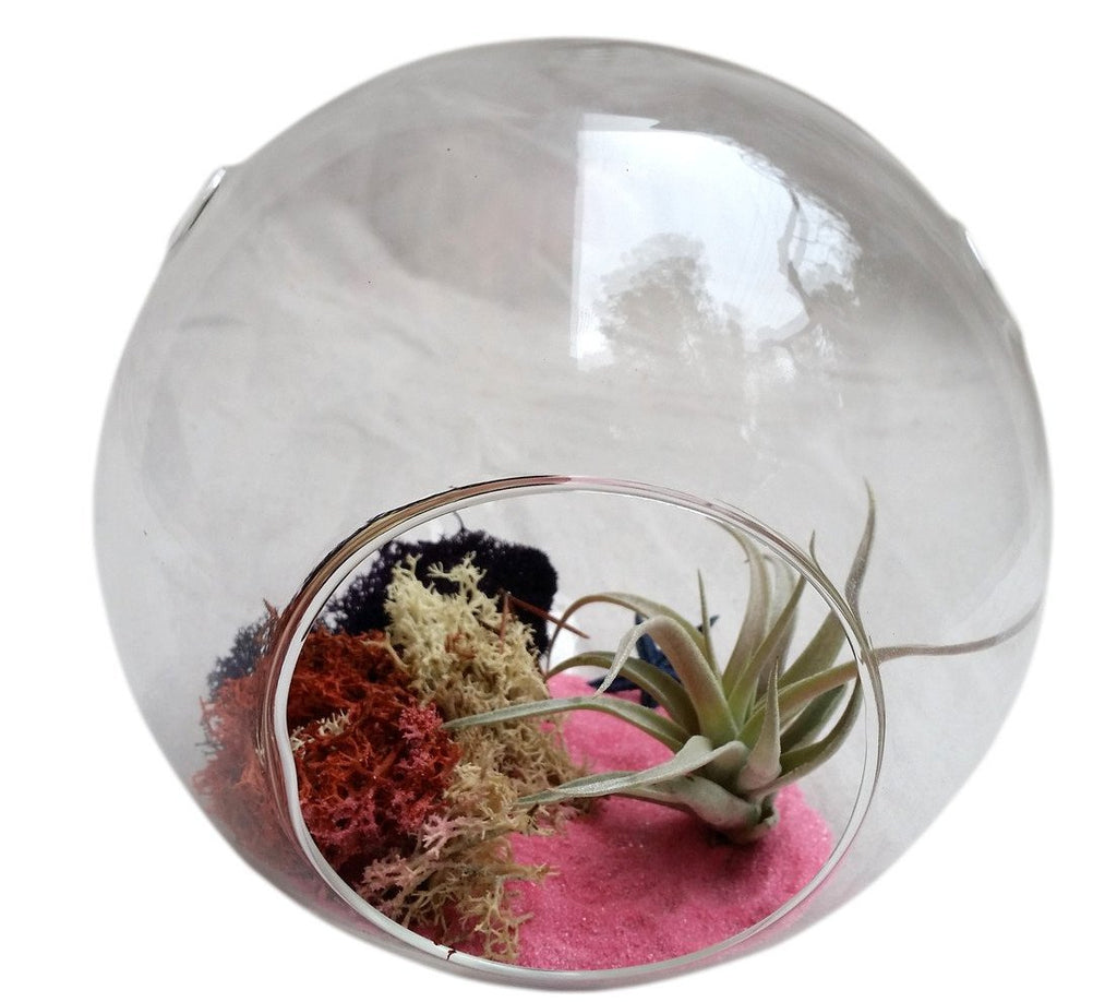 Tillandsia species (also called saprophytes or air plants) – i.e. they normally grow without soil can be attached to other plants, wood, ornaments, etc.