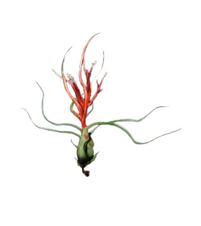 Tillandsia species (also called saprophytes or air plants) – i.e. they normally grow without soil can be attached to other plants, wood, ornaments, etc.