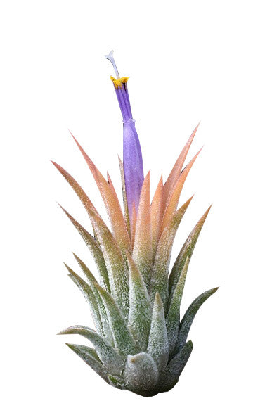 Tillandsia species (also called saprophytes or air plants) – i.e. they normally grow without soil can be attached to other plants, wood, ornaments, etc.